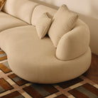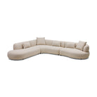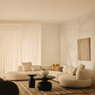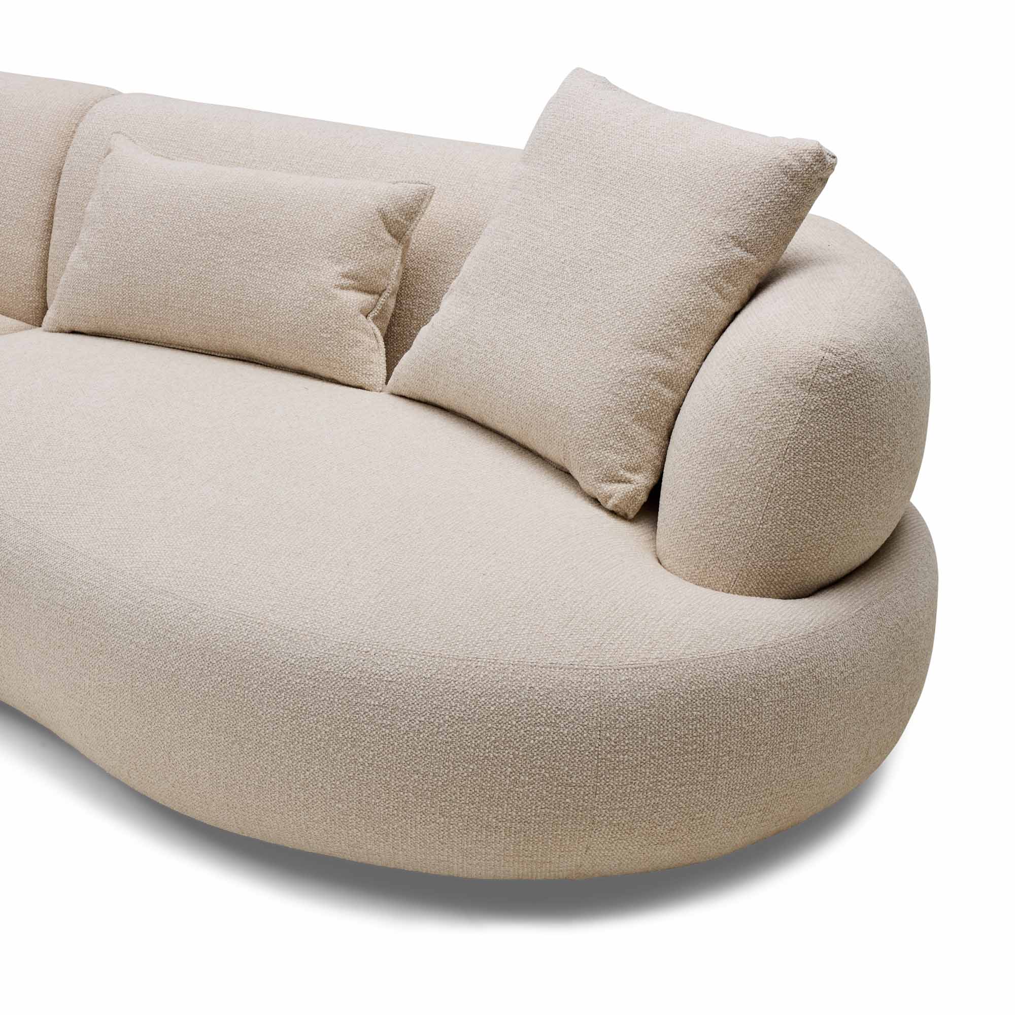 The Beni Modular Sofa is a spacious 5-6 seater including corner piece, designed for ultimate style, comfort, and versatility. Its relaxed, curvaceous silhouette and bold, eye-catching design make it a statement piece in any space, effortlessly blending modern elegance with everyday functionality. Upholstered in a versatile beige fabric that complements a variety of interiors, it features deep, generously sized seats with a medium-firm loungability level, perfect for indulgent relaxation. The low backrests enhance its sleek aesthetic, while discreet connectors allow for easy configuration, ensuring stability while offering flexibility in large or open-plan living areas. Complete with plush throw cushions for added comfort, the Beni Modular Sofa delivers contemporary sophistication and unparalleled lounging.